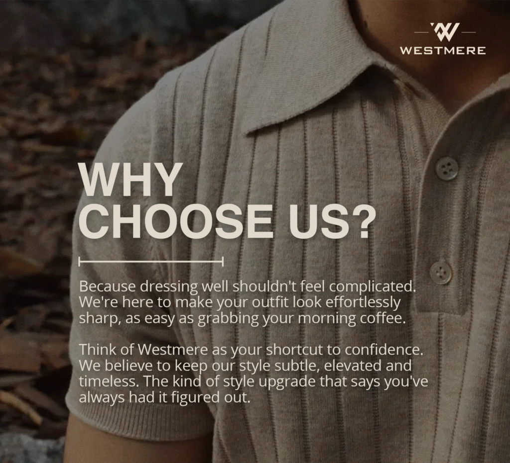 In a world flooded with fast fashion and loud logos, we believe in quiet luxury. At Westmere, every thread is a statement of restraint, class, and enduring style. Inspired by old money aesthetics and British tailoring sensibilities, our garments are designed for men who appreciate subtlety over show, elegance over excess.
